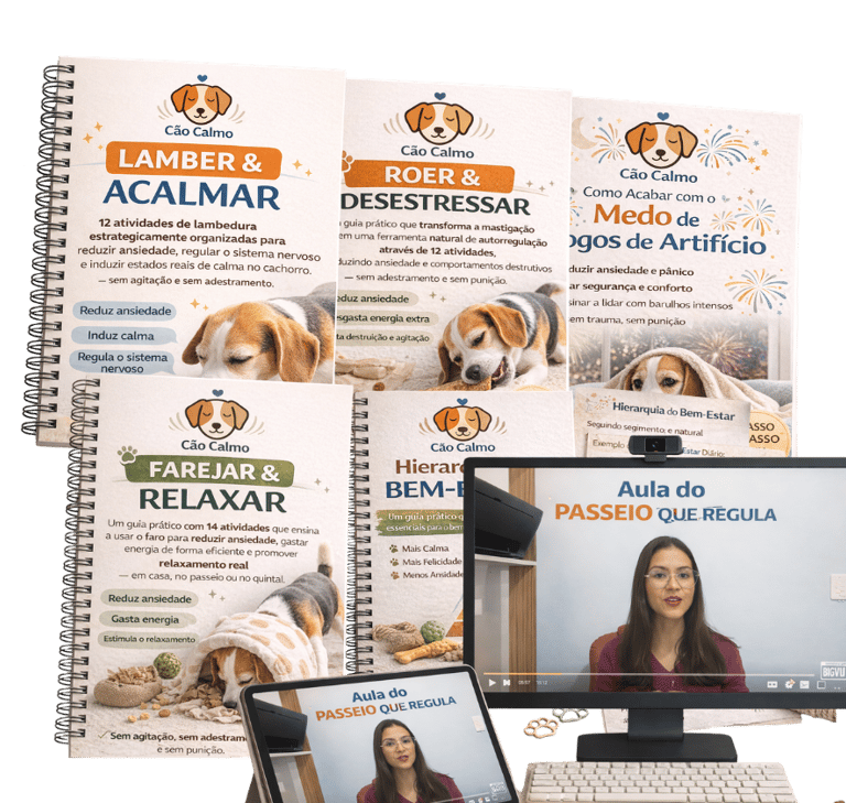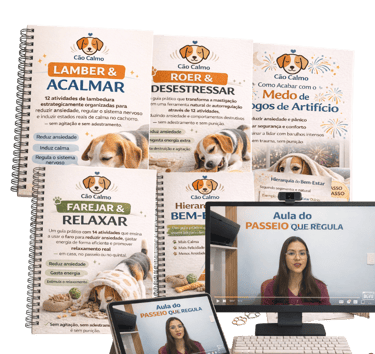 As orientações são práticas, respeitosas e focadas na regulação emocional do cão, funcionando para cães ansiosos, agitados, reativos ou que apresentam comportamentos difíceis no dia a dia.