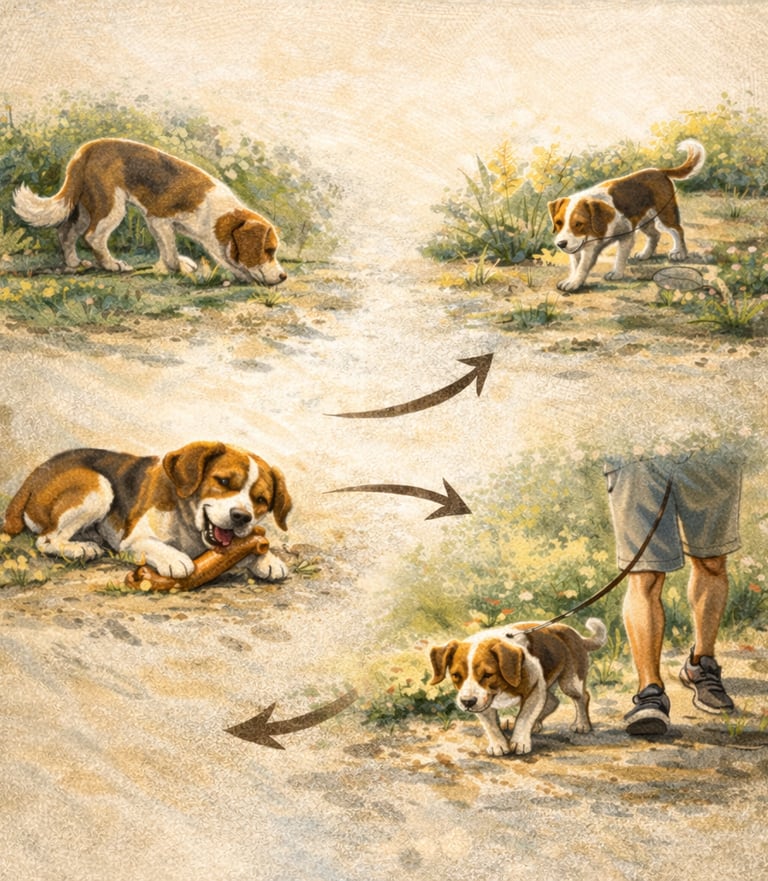 Você aprende como conduzir o passeio com mais calma, usar o farejar a seu favor e ajudar seu cachorro a se autorregular fora de casa — sem puxões, sem correções e sem adestramento tradicional.