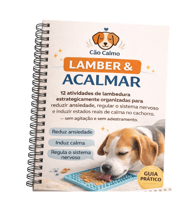 12 atividades de lambedura estrategicamente organizadas para reduzir ansiedade, regular o sistema nervoso e induzir estados reais de calma no cachorro — sem agitação e sem adestramento.